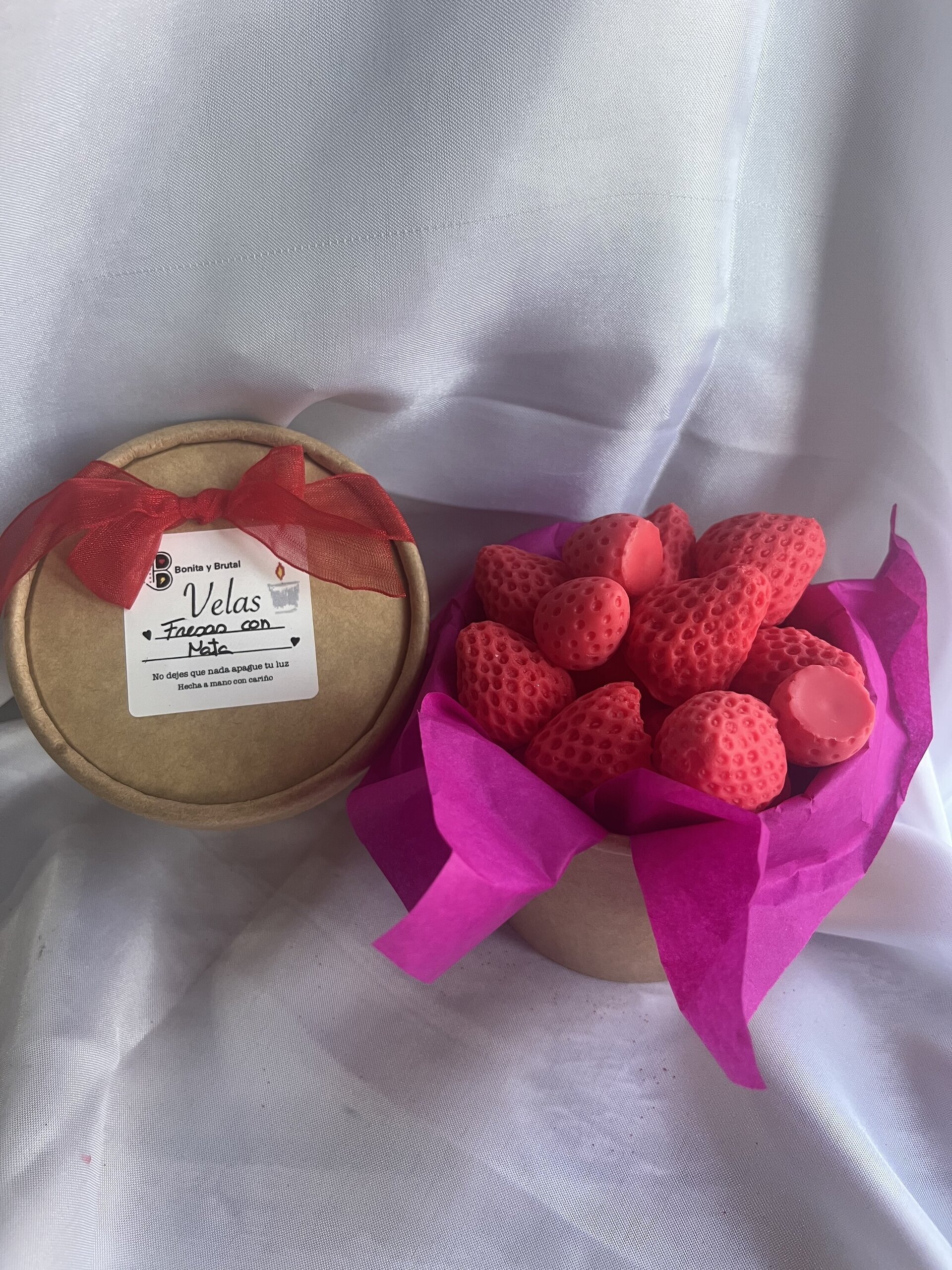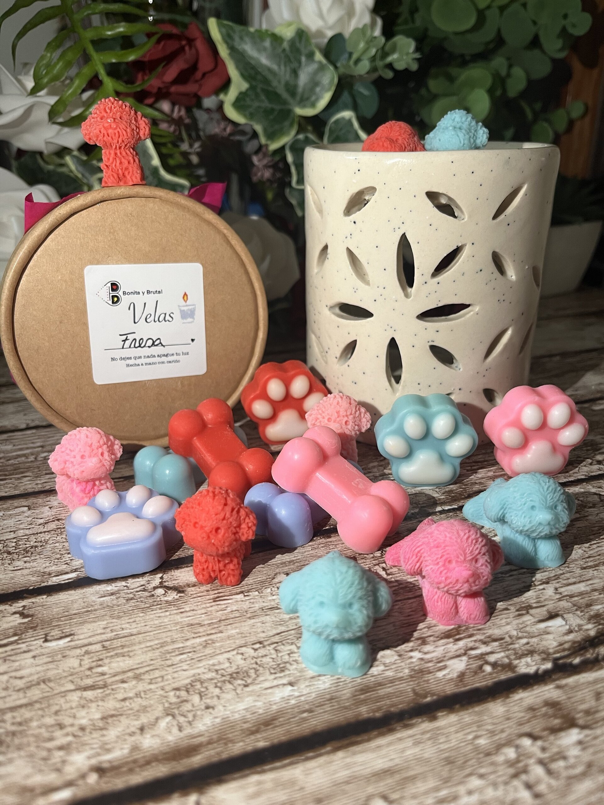 Hechos a mano con cera 100% natural sin tóxicos, con aromas específicos para velas de alta calidad y colorantes orgánicos.
